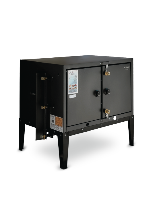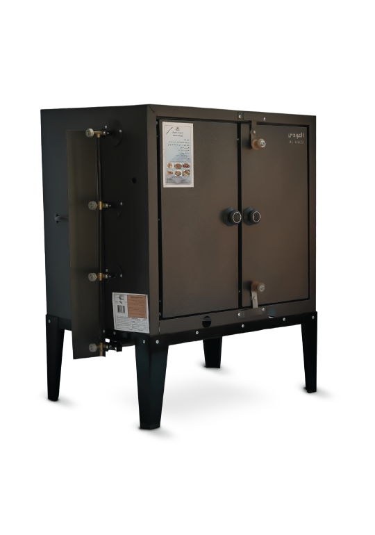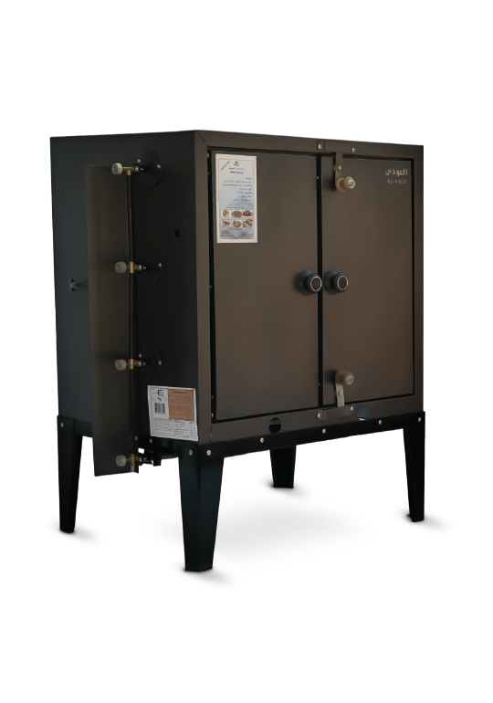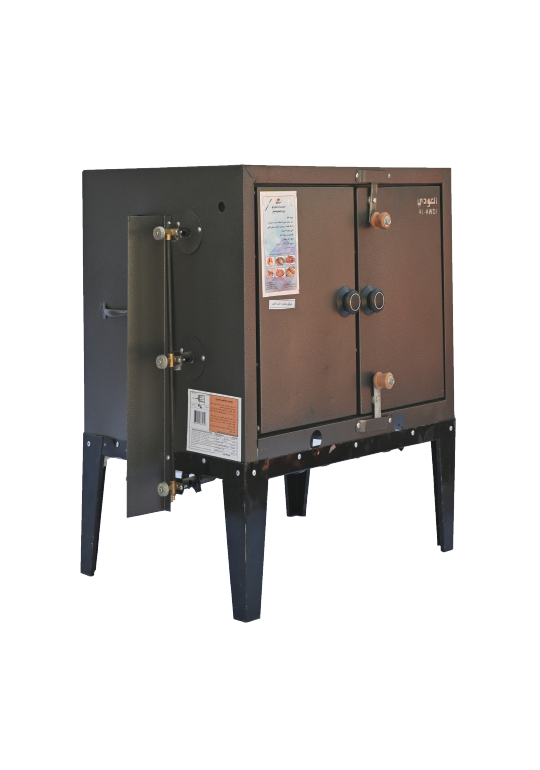 - مُبطَّن بعازل حراري ما بين الجدار الداخلي والخارجي للاحتفاظ بالحرارة داخل الفرن وتخفيف وصول الحرارة للسطح الخارجي.
